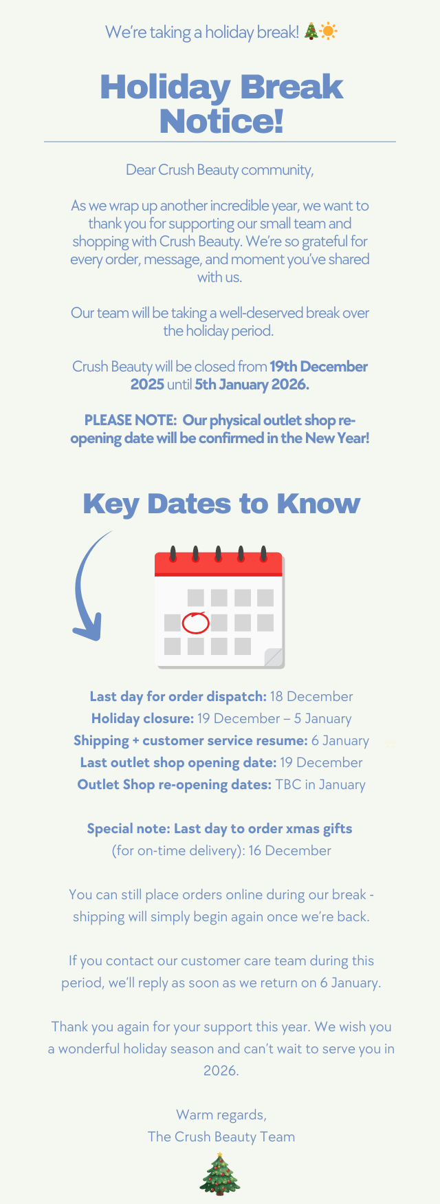Holiday Closure Period